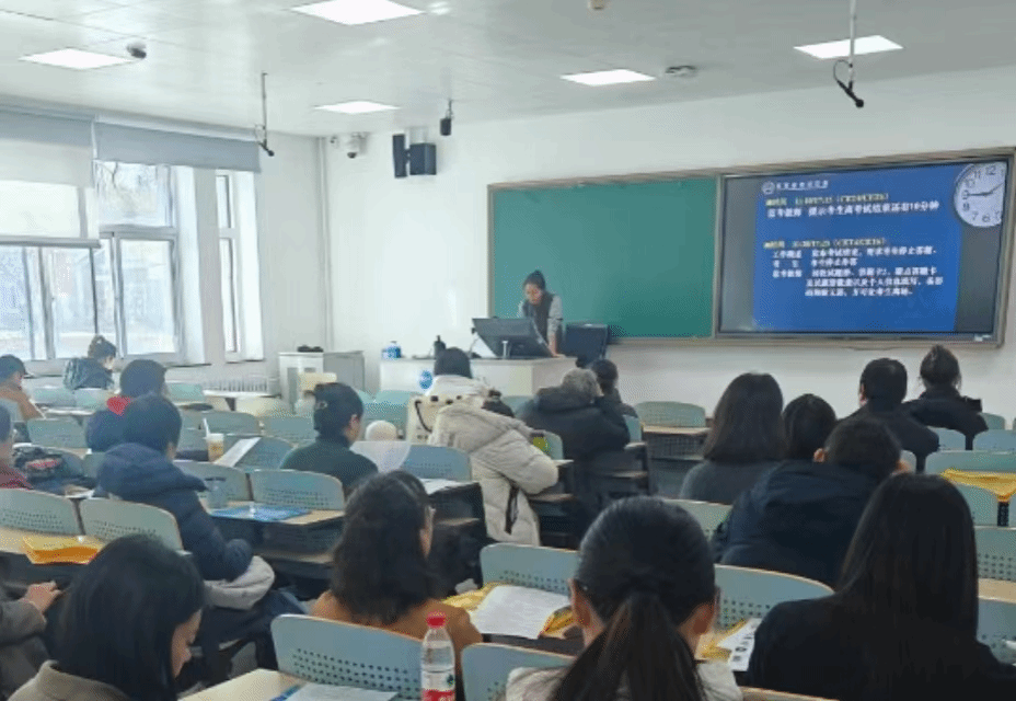 本次四、六级考试适逢北京遭遇冰雪严寒天气,学校各部门克服困难,积极采取措施为考试、考生服务。所有考务人员按时到岗,严守考场纪律,确保试卷分发、回收等环节零误差。本次考试继续使用智能安检门与手持金属探测器双层安检体系,考生安检现场调度有序,考生分批次、分通道快速高效入场。