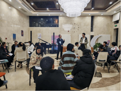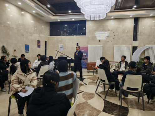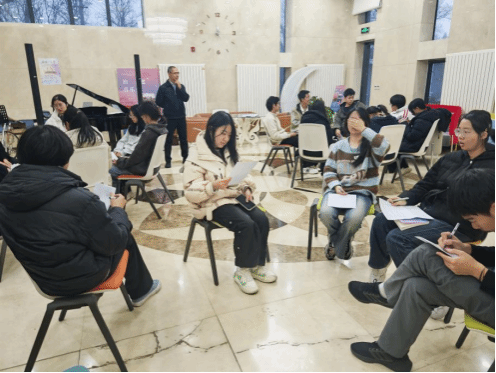活动伊始,王詠老师带领全体同学开启趣味小游戏。当王老师给出一个动作指令时,同学们需迅速做出与之相反的动作。随着指令节奏逐渐加快,现场时而因动作的同步默契发出会心一笑,时而因反应不及的失误响起阵阵欢闹,原本略显拘谨的氛围瞬间被打破,欢声笑语洋溢在活动现场的每一个角落。