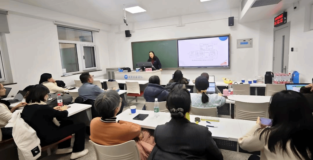 培训中,杨鲁新教授以英语叙事文写作为切入点,层层深入解析写作本质与过程底层逻辑。她围绕 AI 数智技术对写作教学的赋能路径展开分享,从数智工具如何优化写作过程指导、提升批改效率,到如何借助技术开展教学研究,每一个环节都结合教学实际案例进行详细阐释,既有理论高度的框架搭建,又有实操层面的方法指导。杨教授强调,数智技术并非替代教师,而是成为教学的 “得力助手”,通过精准赋能让教师更聚焦于育人本质。