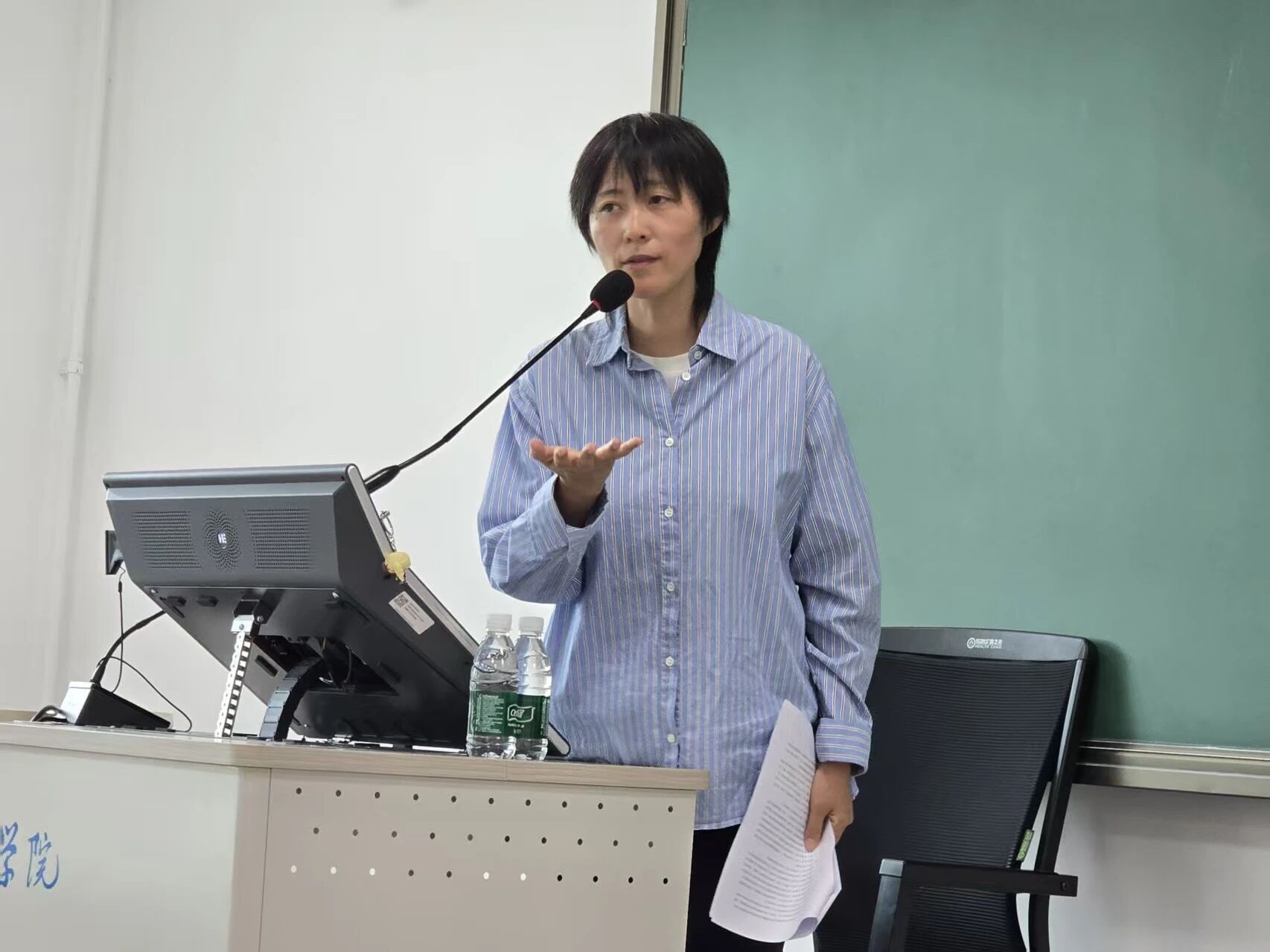 在随后的研讨环节,李老师围绕课程的整体规划、课时分配、教学形式与内容取舍等问题,与在场教师展开了深入交流。与会教师普遍认为,本场讲座内容翔实、逻辑清晰,体现了李老师对教学实践的扎实思考。大家特别肯定了《叙事学》课程在理论深度、学科关联与实践训练方面的有机结合,认为这门课程的设计思路与实施方法,为同行开展富有思辨性与实践性的课程建设带来了启发。