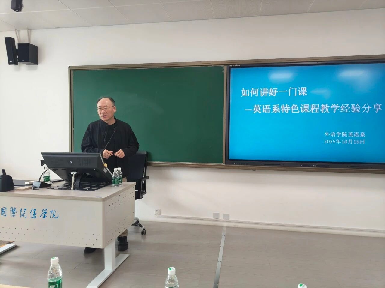 国际关系学院院长胡继平在致辞环节中强调,外语教学是国际关系学院的立校之本和“金字招牌”,当前正在有序推进的大学英语教学改革是学校进一步夯实国关学生外语优势,突出人才培养特色的重要举措,本系列教学经验分享恰逢大学英语教学改革进入攻坚阶段,希望英语系教学团队能够坚定信念、群策群力,在推进教改任务落实落地的过程中充分传承教学经验、分享育人思路,提升教学质量。