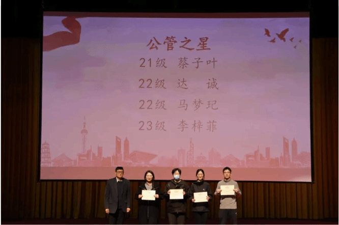 王辉老师和梁爽老师为我系“公管之星”、“优秀党员”、“学术科研奖”、“特别贡献奖”、“优秀学生干部”、“优秀团支部”、“优秀学风团队”、“优秀组织奖”、“优秀干事”、“先进工作个人”、“学风建设个人”、“文体之星”、“服务奉献个人”、“积极发展个人”获奖同学及集体颁发荣誉证书。两位老师对所有受表彰的同学表示祝贺,充分肯定了同学们过去取得的优异成绩,并表达了对公管系未来前景的美好展望。