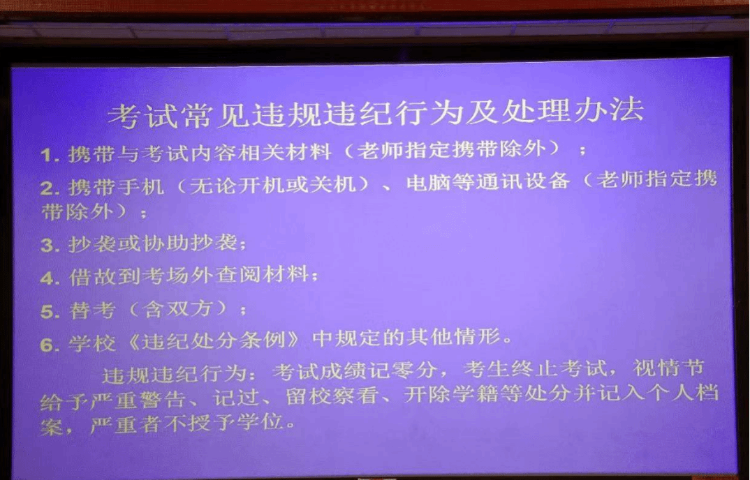主持人首先向大家展示考试注意事项以及违纪处分规定,供大家仔细阅读了解。
